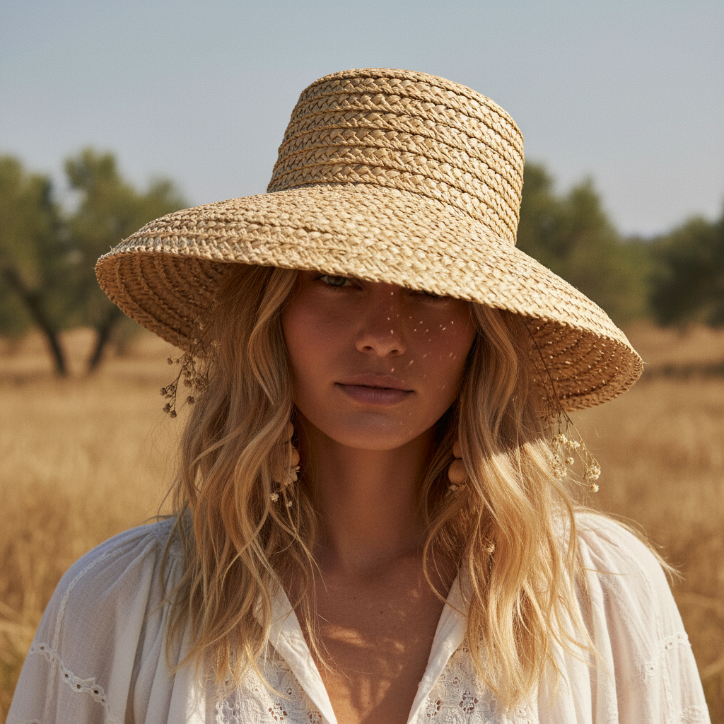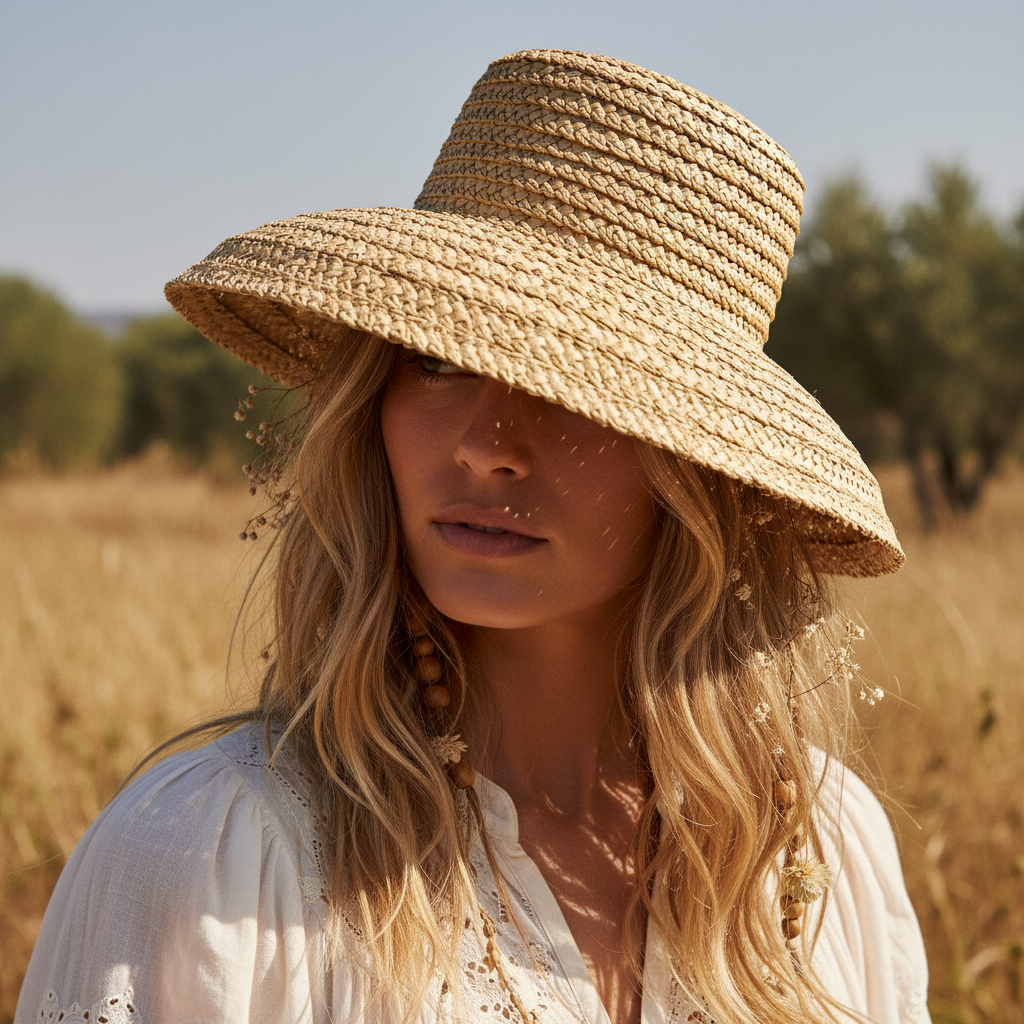 Chapeau de paille tressé style bohème